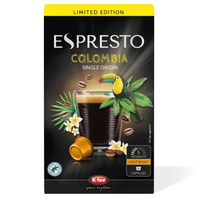 Această ediție limitată, de origine unica, este făcută din boabe 100% Arabica, cultivate în Columbia. Aroma fructată și plină de savoare este însoțită de o prăjire blândă și o aciditate plăcută. Toate acestea transformă această cafea lejeră într-un adevărat răsfăț columbian.